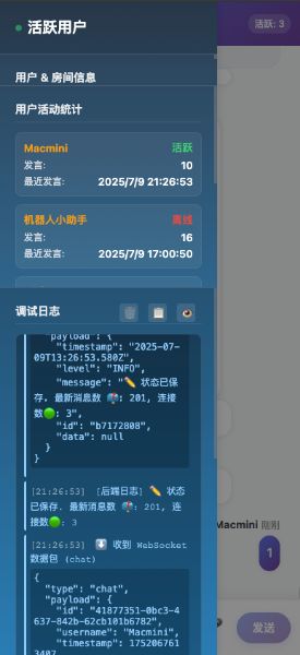 实时调试日志: 在聊天客户端界面,可以直接查看从服务器推送过来的详细实时日志,极大地便利了开发和排错。